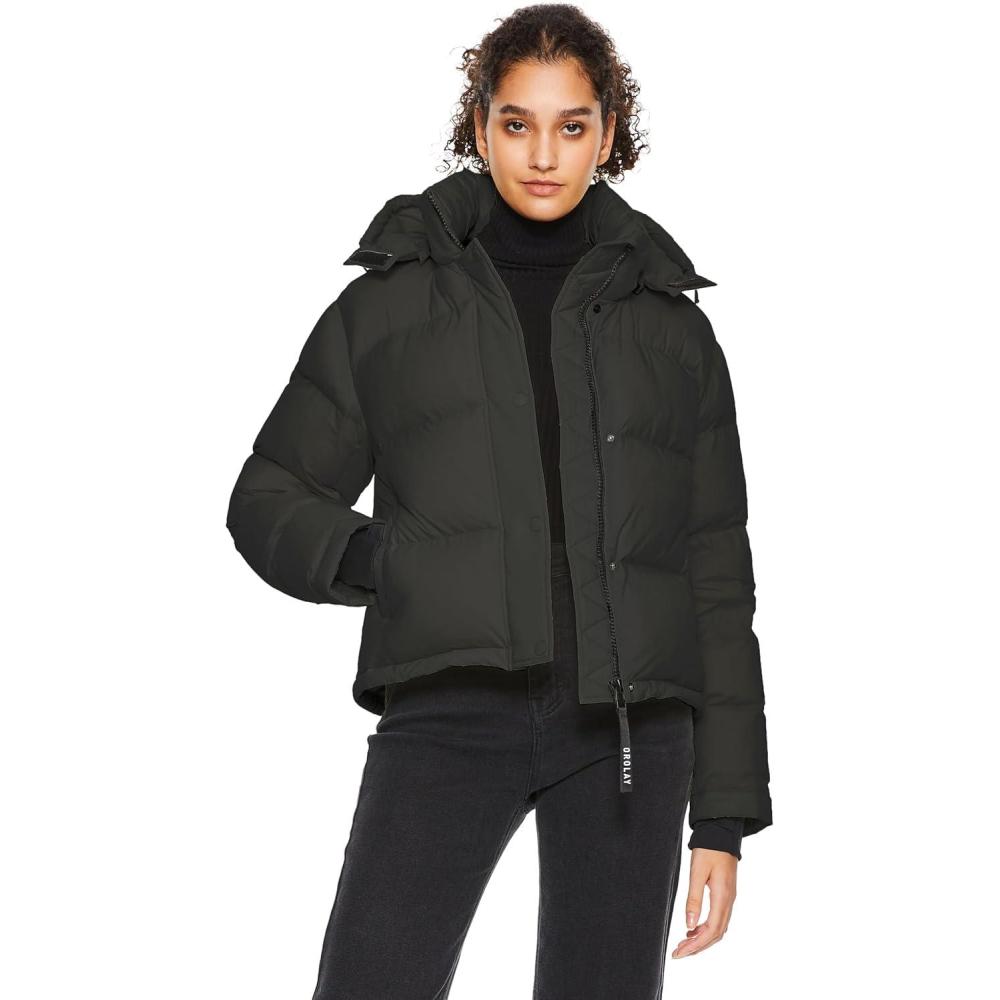 Orolay Women’s Cropped Puffer Jacket Short Down Coat Thickened Winter with Detachable Hood(Black)