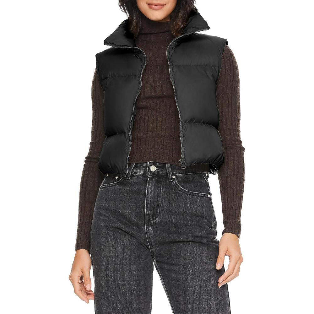 Orolay Women’s Cropped Puffer Vest Winter Crop Down Vest Lightweight Sleeveless Outerwear Padded Gilet(Black)