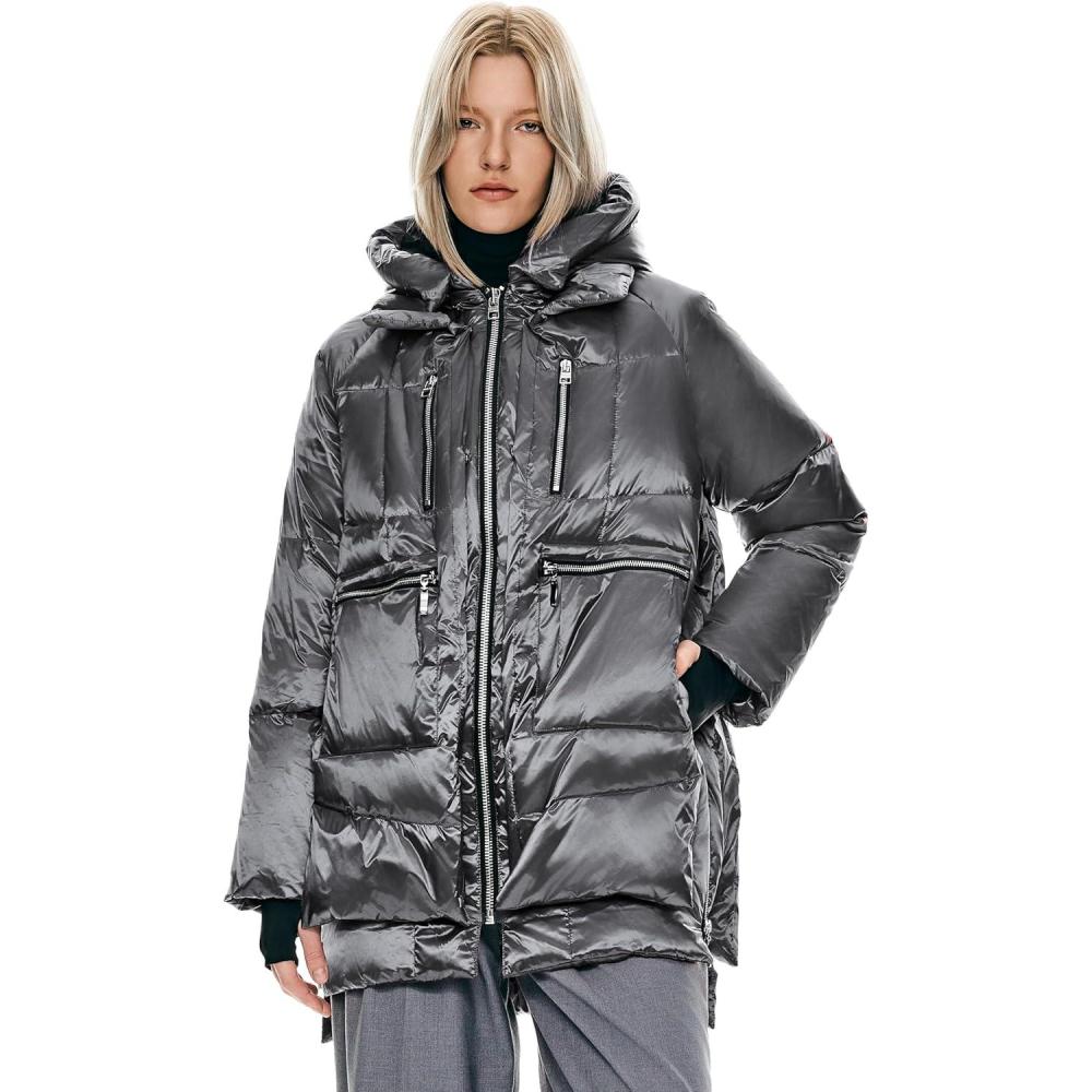 092 Universe Cosmos Shiny Puffer Down Coat(Dark Gray)